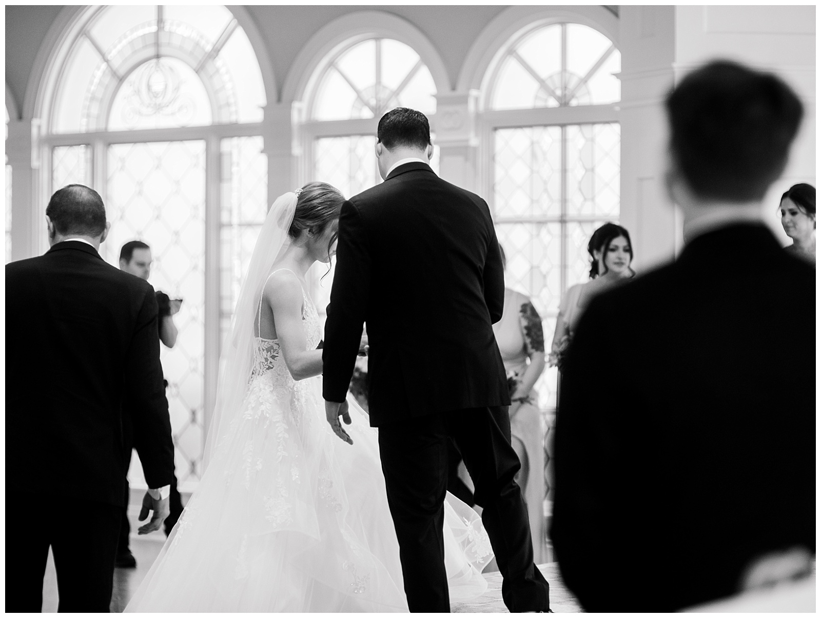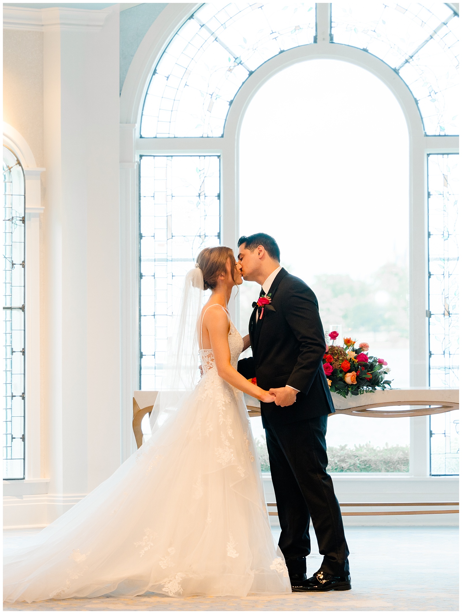 Their Disney Wedding Pavilion ceremony was framed by vaulted ceilings and sweeping waterfront views. The architecture gave the space structure, but it never overwhelmed the moment.