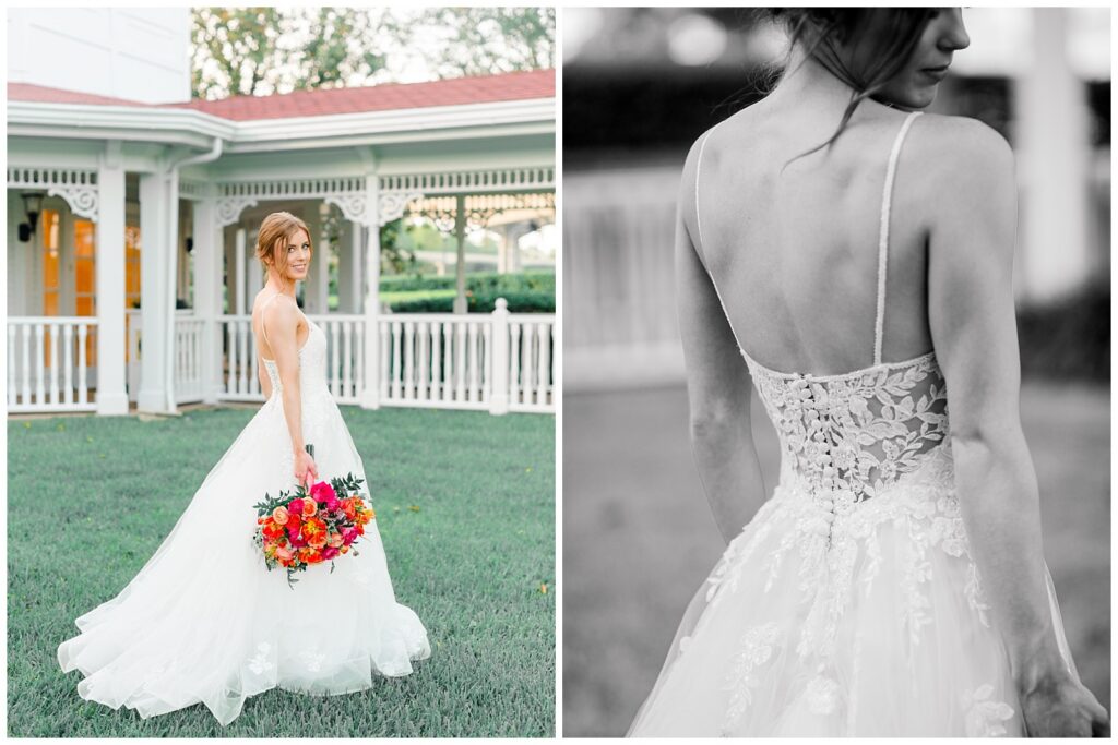 When Madeline stepped into the Wedding Pavilion, she was already in her gown, veil secured, bouquet in hand. We captured a few final images before the ceremony began. A few scene setting details. A soft breath. A subtle adjustment. A steady moment before walking down the aisle.