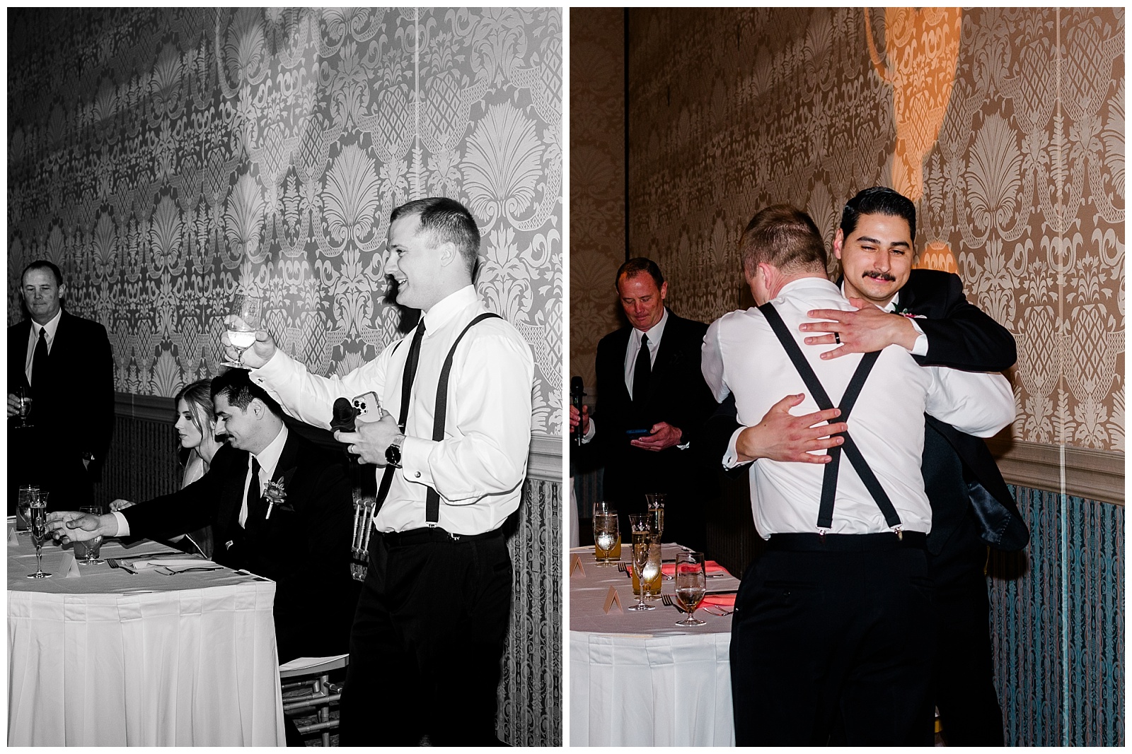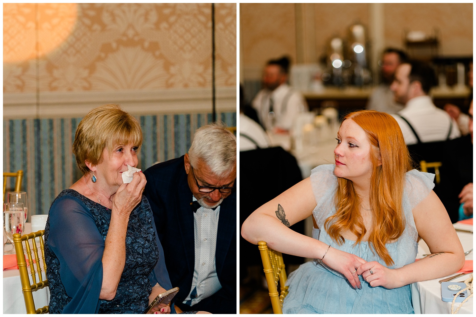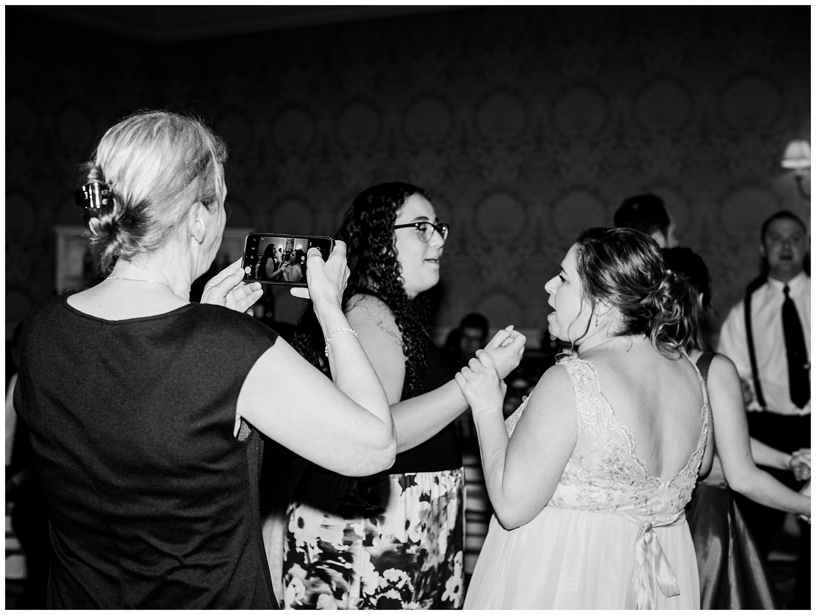 Parents watching during the first dance. A flower girl lifting her phone to record her own version of the evening. Friends leaning in during speeches. Adam hugging someone a little tighter than usual.